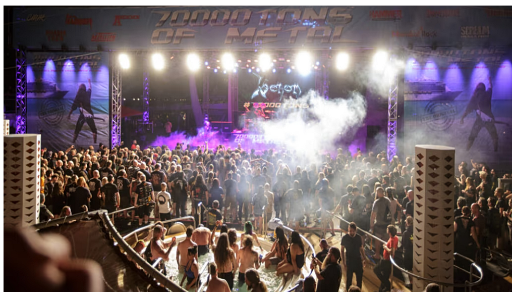 Com o nome bem escolhido de 70000TONS OF METAL, este é o maior cruzeiro de heavy metal do mundo. Costuma durar cinco dias, com partida de Miami e um dia em terra numa ilha das Caraíbas.
